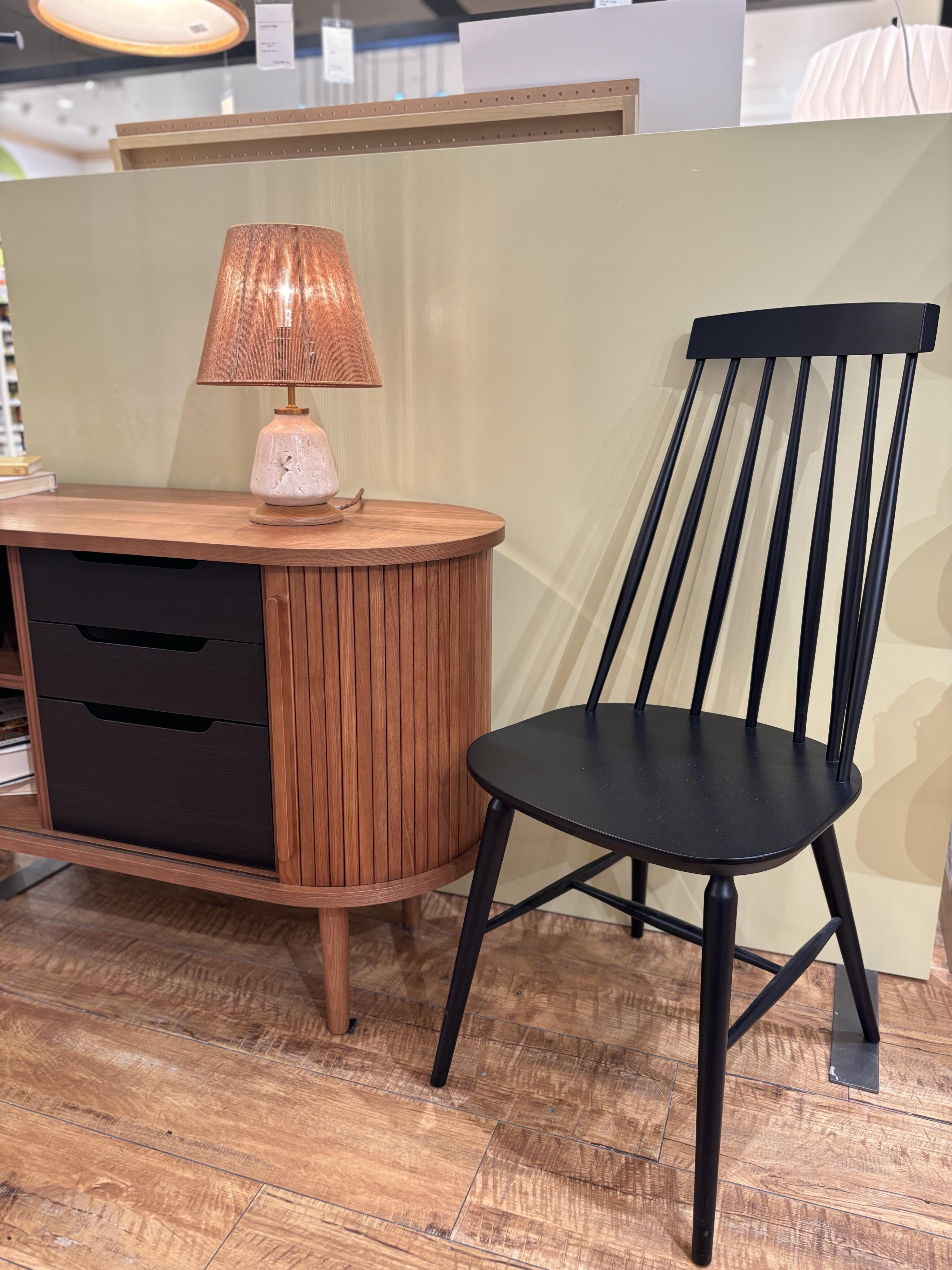 背にある7本のスポークが軽やかなリズム感を生み出し、1脚で壁際に飾る際もオシャレに佇んだ空間に仕上がります。