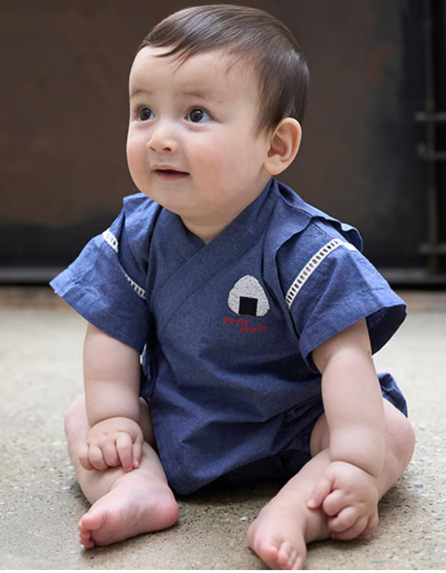 お祭りムードを楽しめる新生児用の甚平です。花火柄、ヨーヨー釣り柄、おにぎり刺しゅうのアソート展開でご用意しました。股部分にスナップボタンを備えており、オムツ替えしやすいのも魅力。